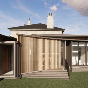 Nimbus was approached to look at providing new living spaces at the back of a client's two storey sandstone residence Sunnyside (McWilliam House), and former coach house, constructed in 1849-1870. Alterations and additions include the removal of an asbestos rear extension and construction of a modern extension in stone and metal, to include a larger living space, kitchen dining and outdoor integrated gathering spaces. The works also include the conservation of the sandstone residence and former coach house. In keeping with the durable material found in the residence, it was decided from the onset to utillise similar materials, polished block walls, concrete polished floor finished wrapped in Zinc-cladding to complement the robust nature of the earlier residence.