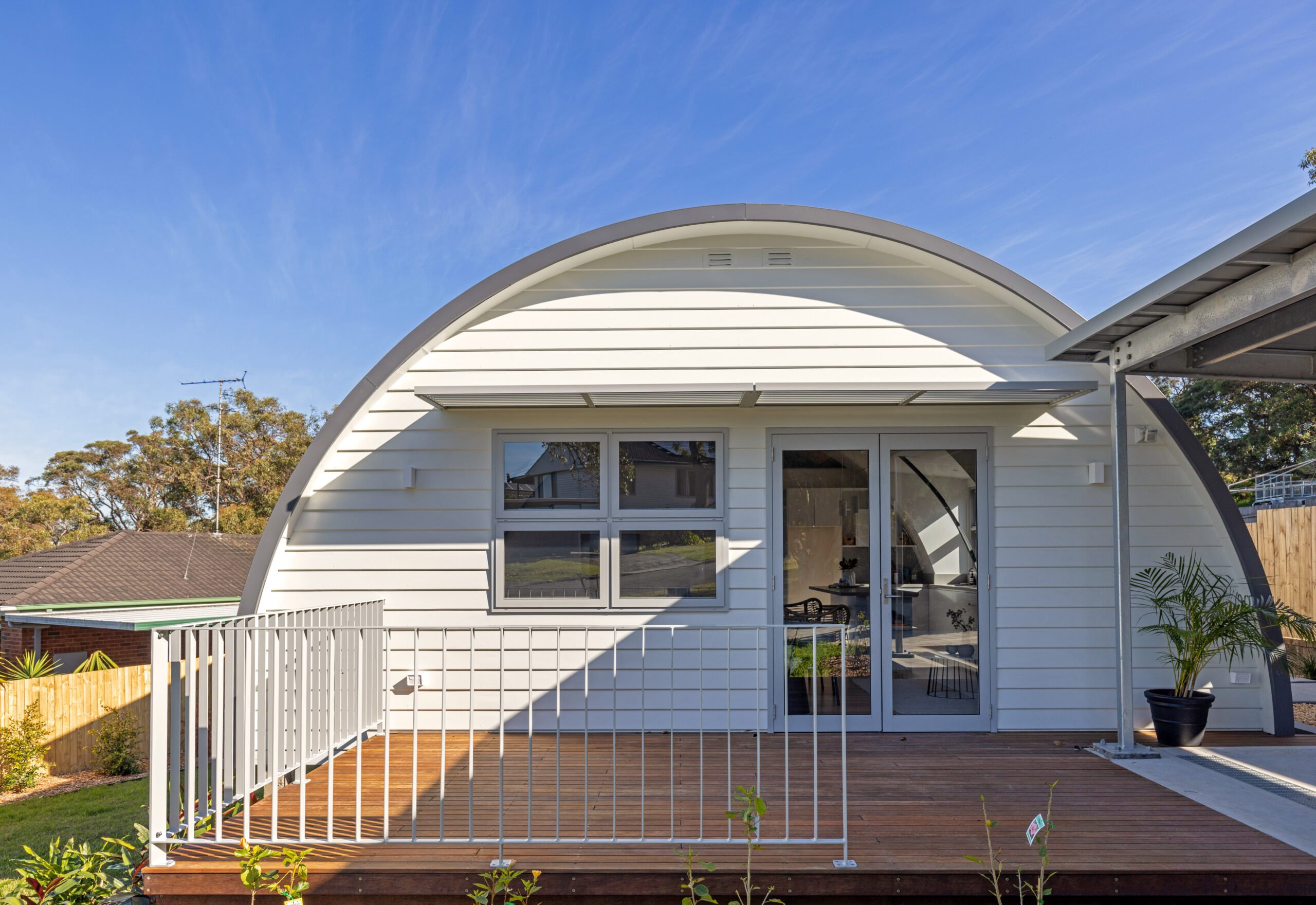 The adaptive re-use and conservation works to the locally significant heritage ‘Nissen Hut’ historic property reactivates an existing, neglected heritage structure with an ongoing use, whilst maintaining as much existing fabric as possible. As part of the Endangered Houses Trust, the Nissen Hut project required careful joint heritage and architecture expertise to design a new extension to the property rear, which now houses a new bedroom and bathroom. The existing building is conserved and internally transformed from its previous migrant accommodation use into a family residence, fitted out with a new outdoor deck, kitchen, bedroom, bathroom, living room, laundry and services.